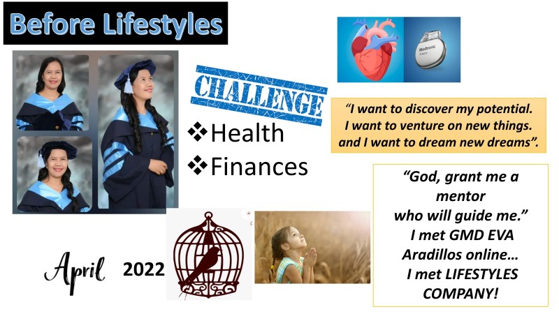 What a grace to meet GMD Eva Hermosilla Aradillos, to be guided by NMD Marco Gabriel Aradillos, and to be a member of the best company for health and wellness! Thanks be to God for this blessing! I am sharing my story to inspire and to reach out to people suffering from illness specially those in need of cardiovascular support. I have pacemaker for fourteen years and it is only after using Lifestyles products that made my heart's condition better.