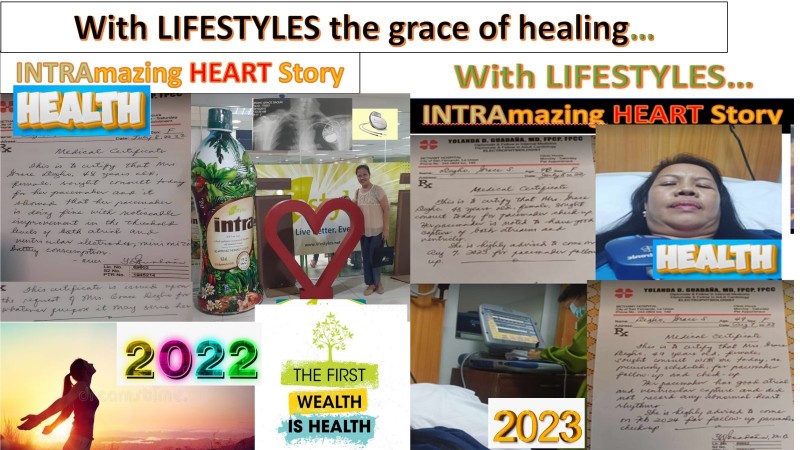 ANSWERED PRAYER In 2022, I met somebody who introduced me to LIFESTYLES COMPANY. I signed up as a distributor May 2022 and used all the products. After using the BETTER TOGETHER KIT products for just six weeks, a MIRACLE happened! My doctor discovered that my body and my heart are in the best condition. My pacemaker is doing fine and my battery consumption is minimized. Last August 7, 2023, I went for check up and still, the life span of my battery is 5 years and there were no record of abnormal hearth rhythms. I went for another check up last July 29, 2024. My electrophysiologist commented I have optimal results. The lifespan of my battery is less than five years compared to her statement last December of 2021 to be less than four years. I thank God because I am healthy and I do not have maintenance medicines. My husband who is non-believer of food supplement turned to be my greatest supporter and promoter when he got healed of his sinusitis, lumbar pain and diabetes. With the products my family, siblings, friends and other users experienced healing. These healing experiences gave to Teams of Graces in La Union. We are channels of graces in and through Lifestyles Company and AB Community!