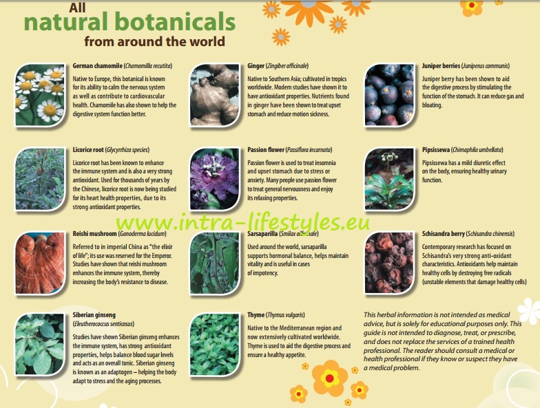 Všechny látky jsou přírodního původu a dlouhodobě používané jako vyjímečné doplnění běžné stravy.